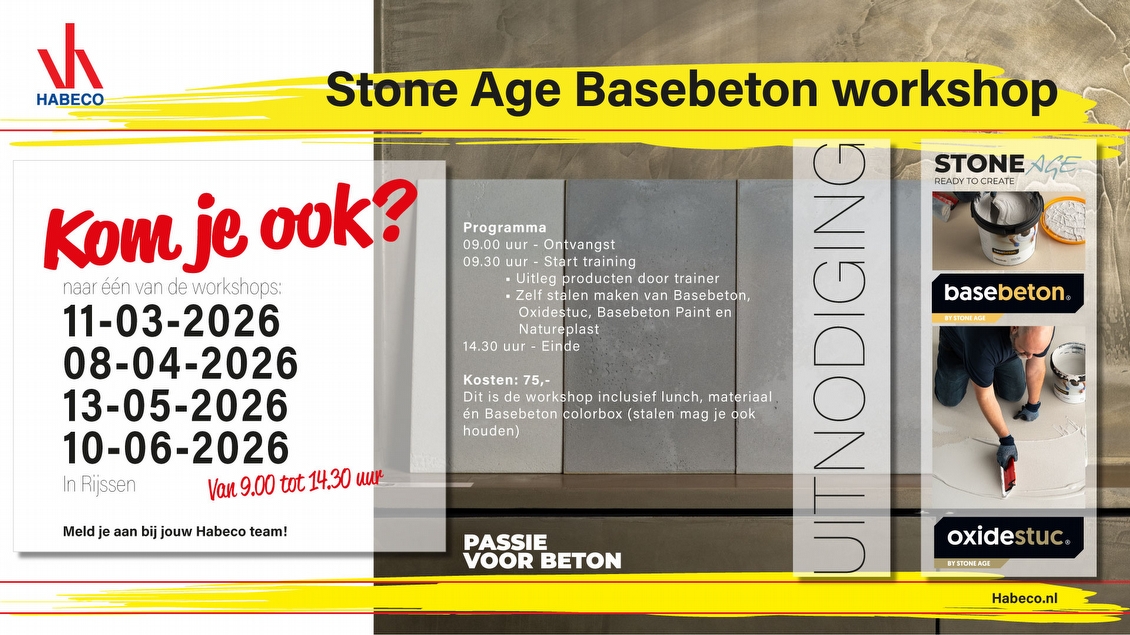 De deelnemers gaan met de volgende producten aan de slag: Basebeton, Oxidestuc, Basebeton Paint en Natureplast.